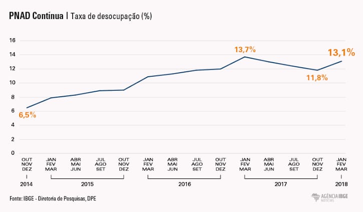 Taxa de desocupação em 2018.