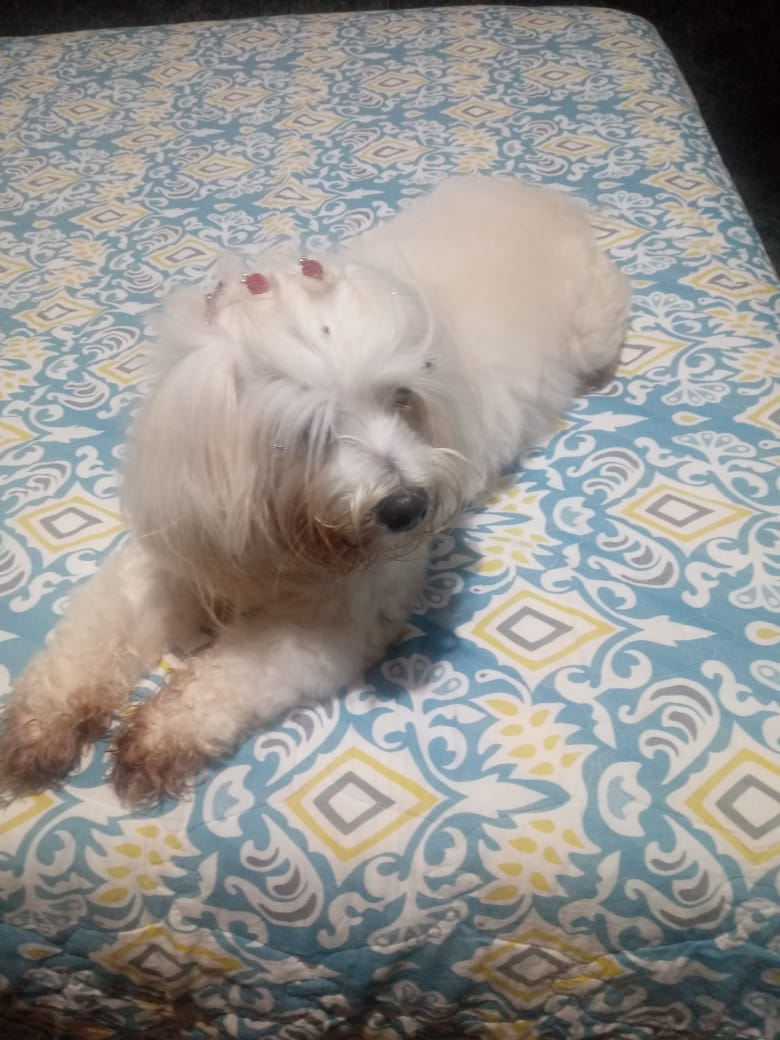 O animal se chama Lola e é da raça Maltês