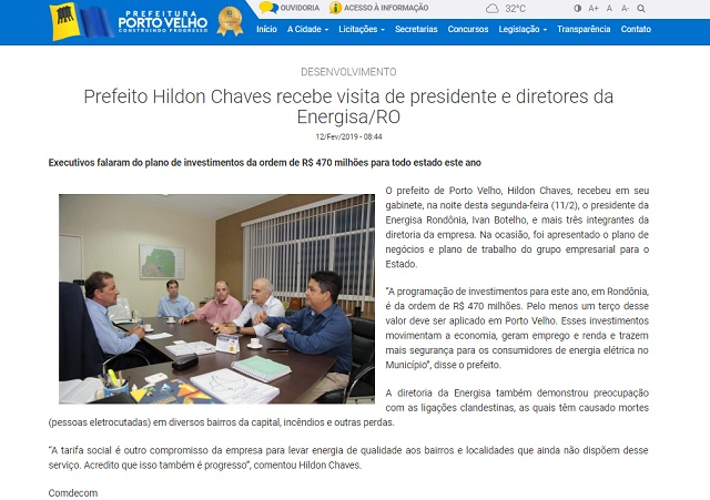 “Pelo menos um terço desse valor deve ser aplicado em Porto Velho. Esses investimentos movimentam a economia, geram emprego e renda e trazem mais segurança para os consumidores de energia elétrica no município”, disse o prefeito da capital, à época, sobre a chegada da Energisa em nosso Estado.