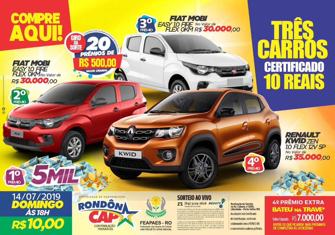 E neste domingo o Rondoncap vai sortear três carros zero quilômetros e mais prêmios em dinheiro.