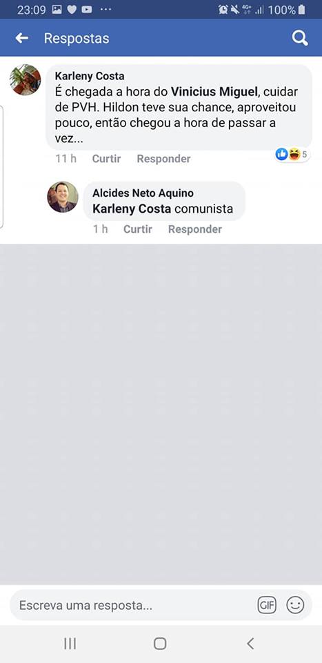 Na noite desta sexta-feira (19) o jovem político denunciou um ataque praticado por um assessor comissionado do ex-promotor e prefeito Hildon Chaves que numa postagem o rotulou-o de comunista.