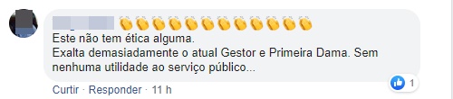 E os internautas também sairam em defesa do professor atacado pelo assessor comissionado. Um deles comentou: "Este não tem ética alguma. Exalta demasiadamente o atual Gestor e Primeira Dama. Sem nenhuma utilidade ao serviço público..