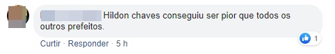 Entre os mais de 50 comentarios em defesa de Vinicius, outro tascou "Esse rapaz é um pobre de espírito que transformou a bajulação em meio de vida. Vive a ilusão de ser um "digital influencer", mas é incapaz de escrever uma linha com correção e coerência" Até para o chefe de Alcides sobrou criticas, "Hildon chaves conseguiu ser pior que todos os outros prefeitos."