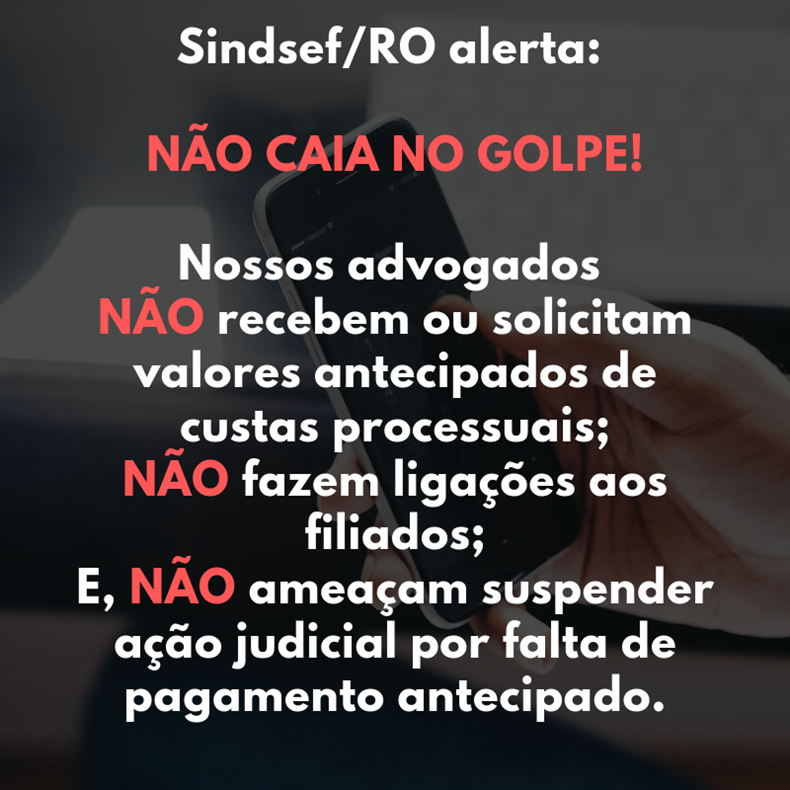 O Sindicato dos Servidores Públicos Federais no Estado de Rondônia – Sindsef/RO alerta seus filiados para as diversas tentativas de golpe que estão sendo aplicadas aos beneficiários de ações judiciais .
