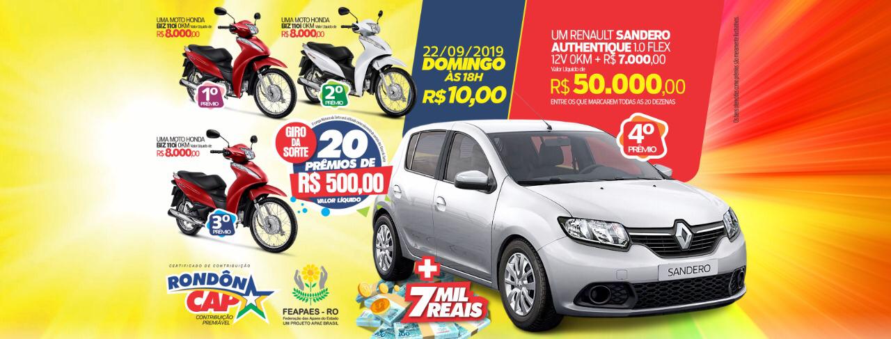 E nesta semana o Rondoncap vai sortear 03 Motos HONDA, um automóvel com 7 mil reais no porta luvas e muitos outros prêmios para você.