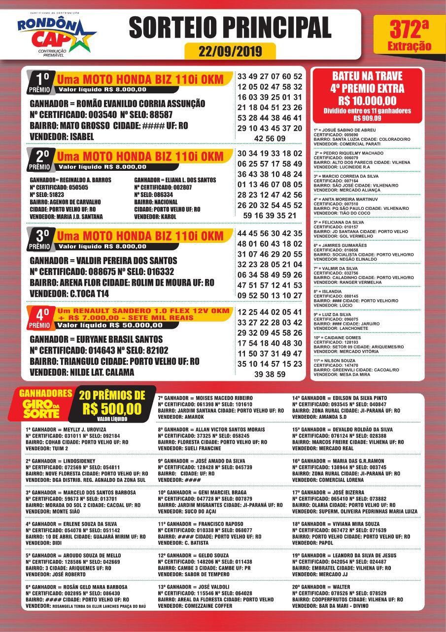 Com o Rondoncap, além de ajudar as Apaes de Rondônia você também pode ganhar! Os prêmios que foram sorteados no domingo, dia 22 de setembro saíram para as cidades de Porto Velho, Rolim de Moura, Ariquemes, Guajará Mirim, Cacoal, Ji Paraná, Vilhena, Colorado do Oeste, Jaru e houve ganhadores do Paraná e do Mato Grosso; possivelmente são caminhoneiros que também ajudaram as Apaes de Rondônia.
