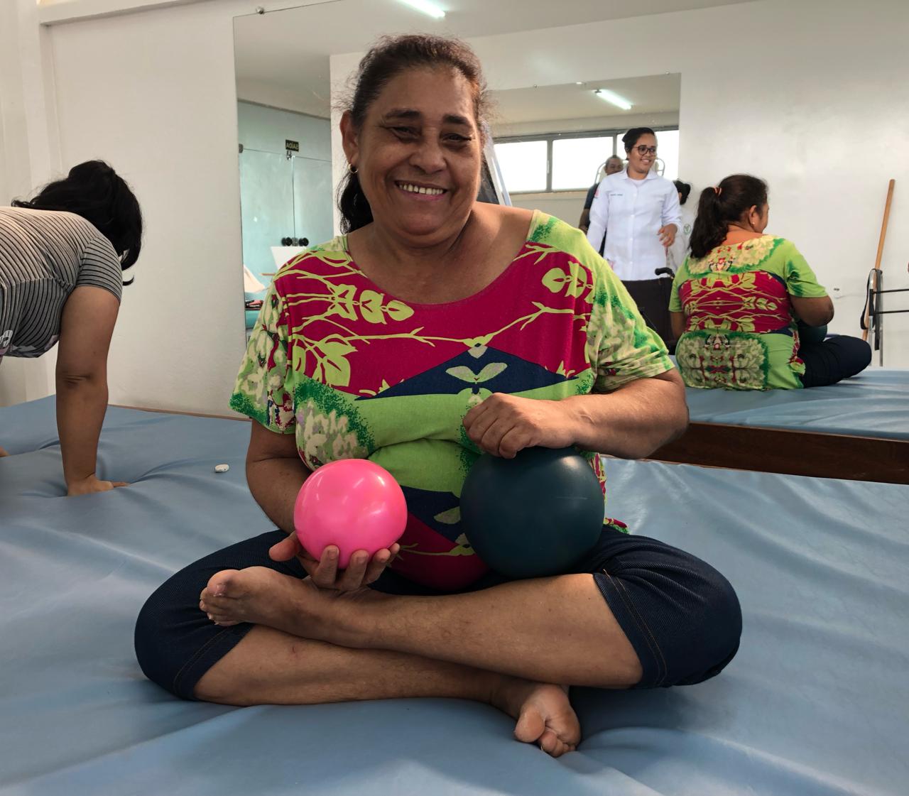 “Eu comecei aqui em agosto, e desde então eu tenho melhorado muito, bastante mesmo, em vista do que eu estava eu tô é bem agora. Faço exercícios para todo o lado esquerdo do meu corpo, e eu acho legal demais aqui. Eu não sabia que atendiam, a minha colega foi quem soube e marcou pra mim, vim a primeira vez e já gostei. Graças à Deus estou bem e indico para as pessoas. ”