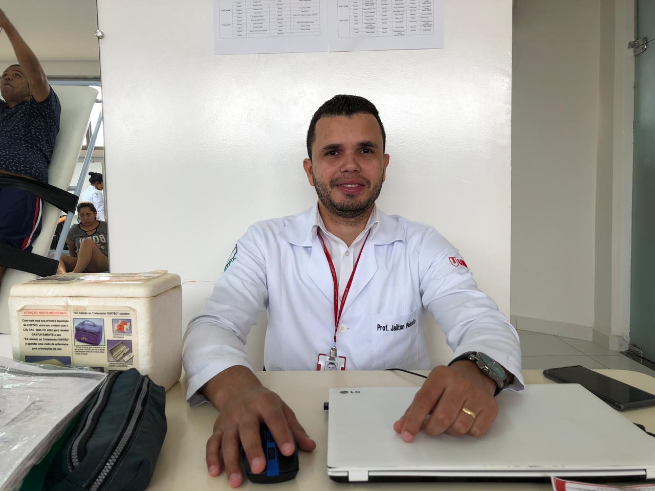 O professor Fisioterapeuta, pós-graduado em Ortopedia e Traumatologia, Jailton Peixoto, atualmente supervisiona os acadêmicos no estágio de neurologia adulto, setor da Clínica que atende pacientes que apresentam alterações do sistema nervoso central e periférico.
