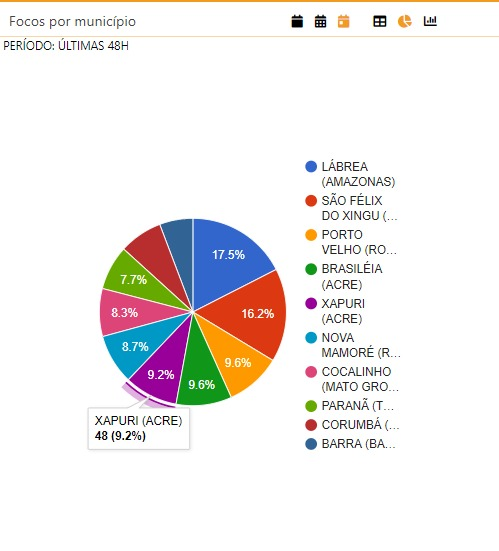 O primeiro colocado nas últimas 48 horas é o município de Lábrea, no Amazonas