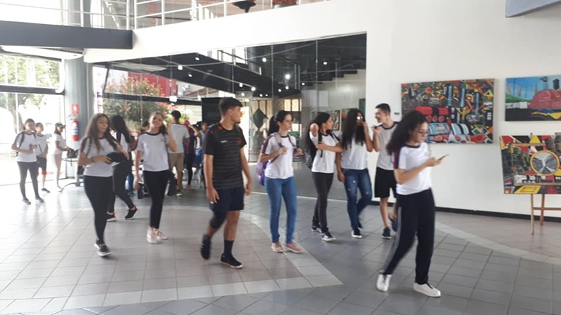 Visitação dos estudantes e professores da Escola LAURA VICUNA na exposição do artista plástico Assis Chateaubriand e telas do acervo do jornalista Paulo Andreoli