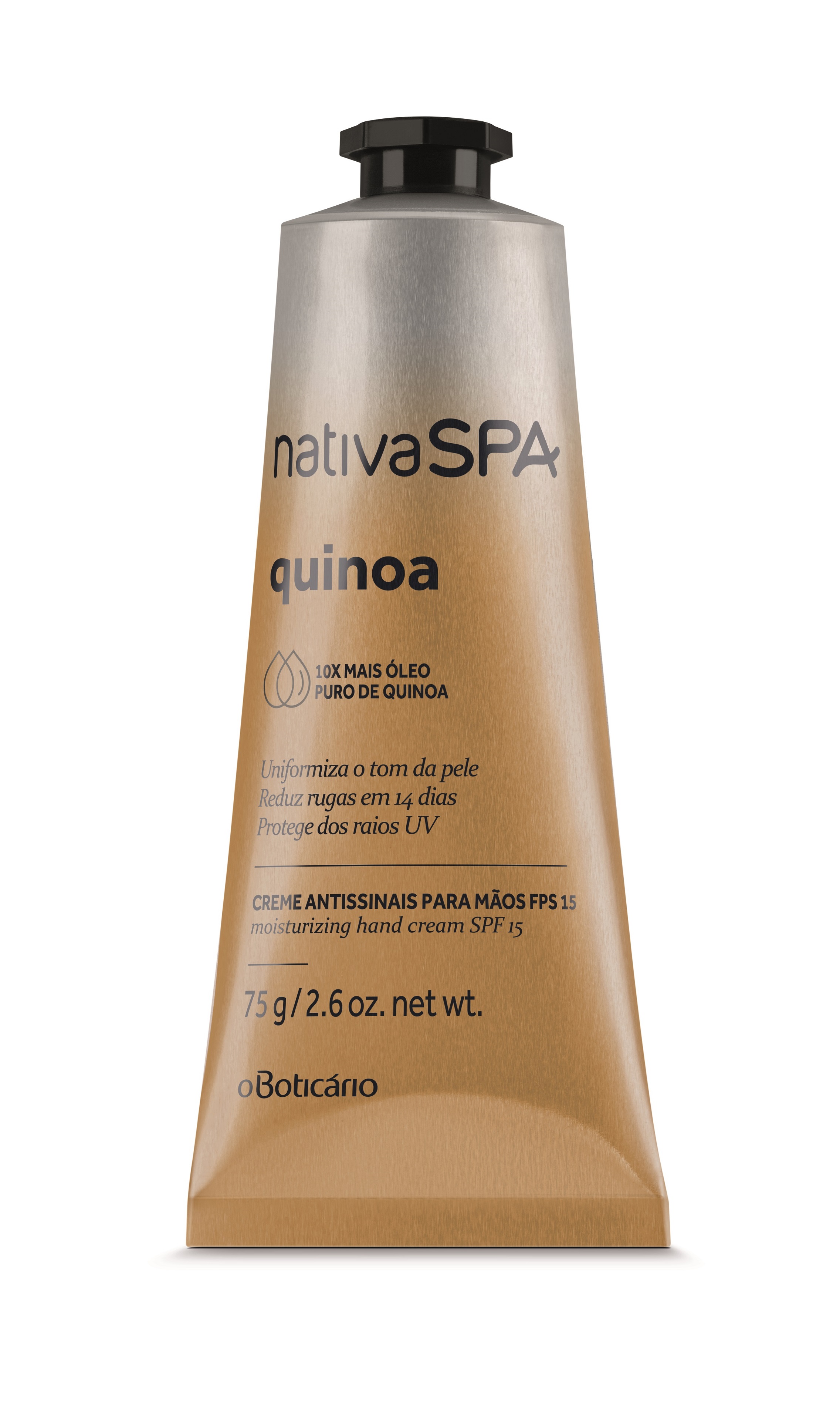 “Nativa SPA Quinoa é indicada para todos os tipos de pele, mas foi criada especialmente para pessoas que gostariam de melhorar o aspecto da flacidez e do ressecamento. Também é altamente indicada para quem busca combater e proteger as regiões que demonstram mais visivelmente o envelhecimento do corpo, como o colo, pescoço e mãos”, conta Vanessa Machado, gerente de Cuidados Pessoais do Boticário.