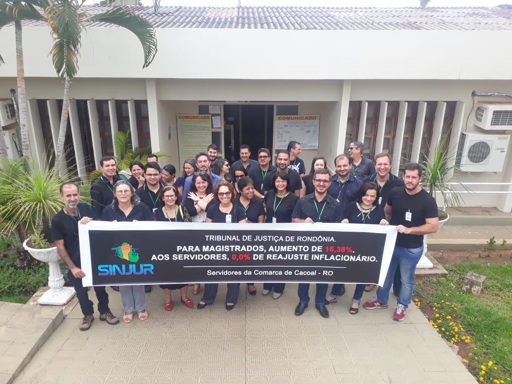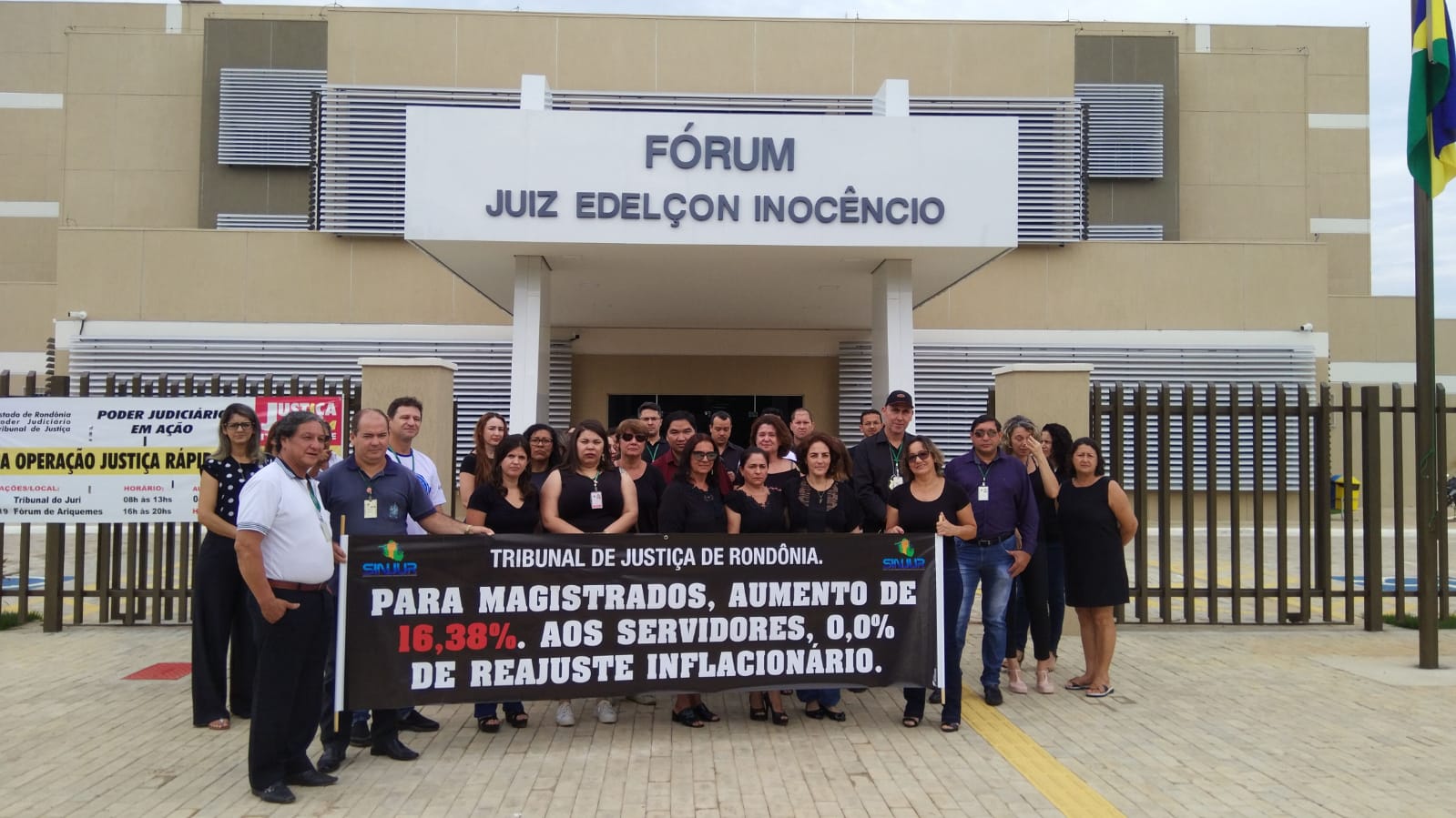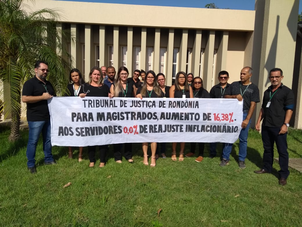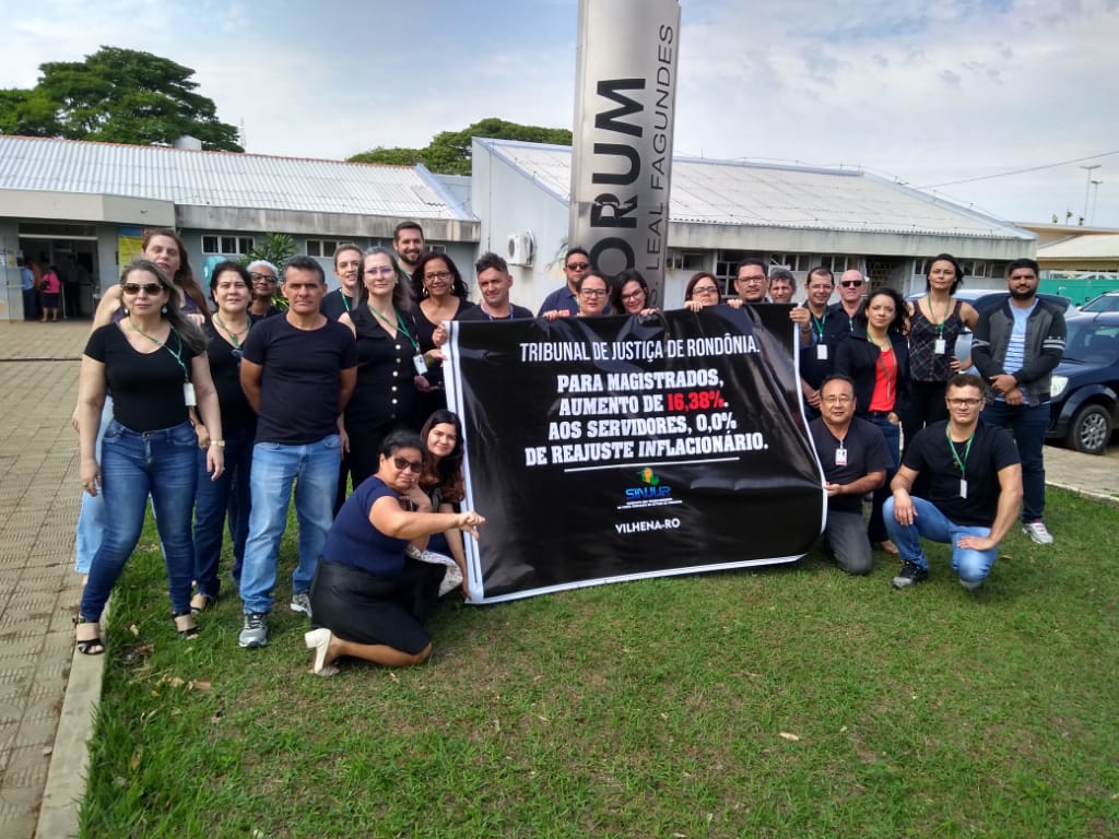 Na manhã desta segunda-feira (14/10), servidores do Poder Judiciário do Estado de Rondônia reuniram-se em frente do Tribunal de Justiça e dos fóruns nas Comarcas do interior do Estado para fazer um protesto ordeiro e silencioso contra a não implementação do reajuste salarial 2019.