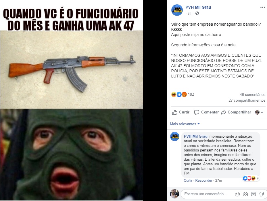 Emir, que na hora do confronto com a polícia estava portando um fuzil russo AK-47, ostentava na internet com vídeos em baladas na capital rondoniense.