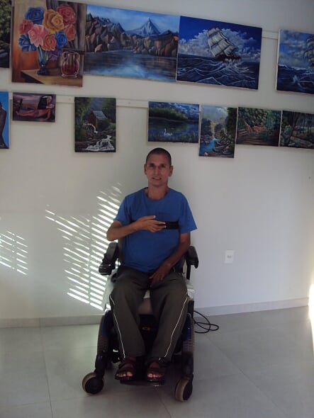 Sou tetraplégico desde fevereiro de 2000, e digamos que vivi e estou vivendo duas vida numa só, gosto de escrever versos, poemas, contos, e até escrevi um livro, pinto tela, e desde 2016 faço parte da APBP ( Associação de Pintores de Boca e os Pés ).