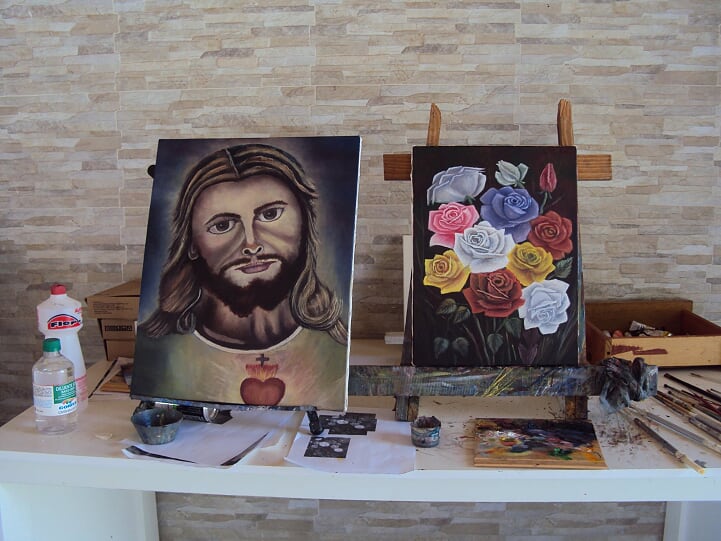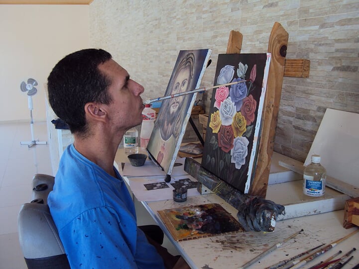 Pintei cerca de 10 telas com a boca, e em maio de 2015 entrei em contato com a Luciana Muniz que faz parte da APBP de São Paulo, onde prontamente respondeu e marcou um dia para vir em minha casa explicar como funcionava a Associação.