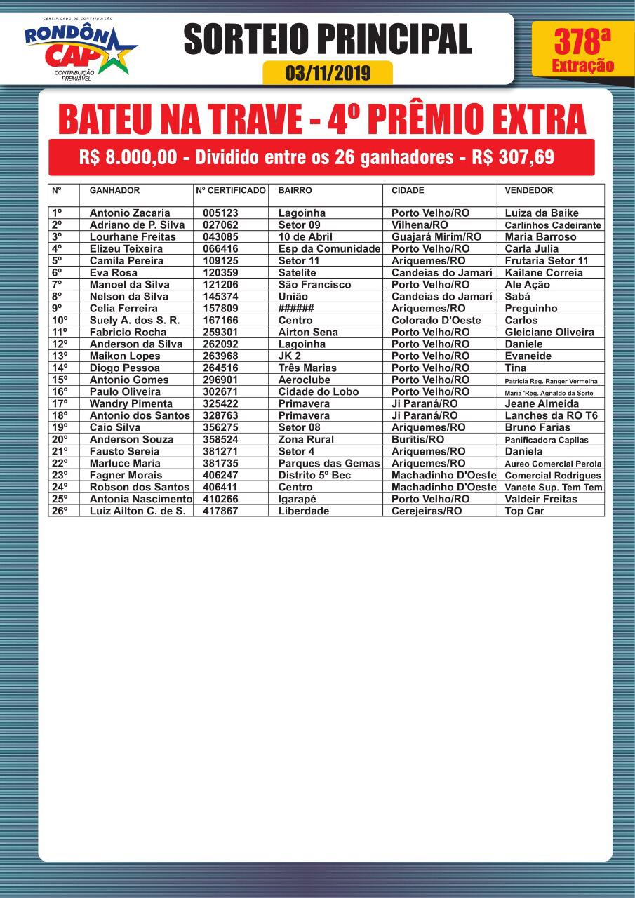 Foram muitas emoções e as Apaes de Rondônia agradecem sua generosidade. Houve ganhadores em várias cidades de Rondônia: Rolim de Moura, Vilhena, Pimenta Bueno, Guajará Mirim, Cacoal, Porto Velho, Cadeias do Jamari, Cujubim, Ji Paraná, Buritis, Ariquemes, Colorado do Oeste, Cerejeiras e Machadinho do Oeste.