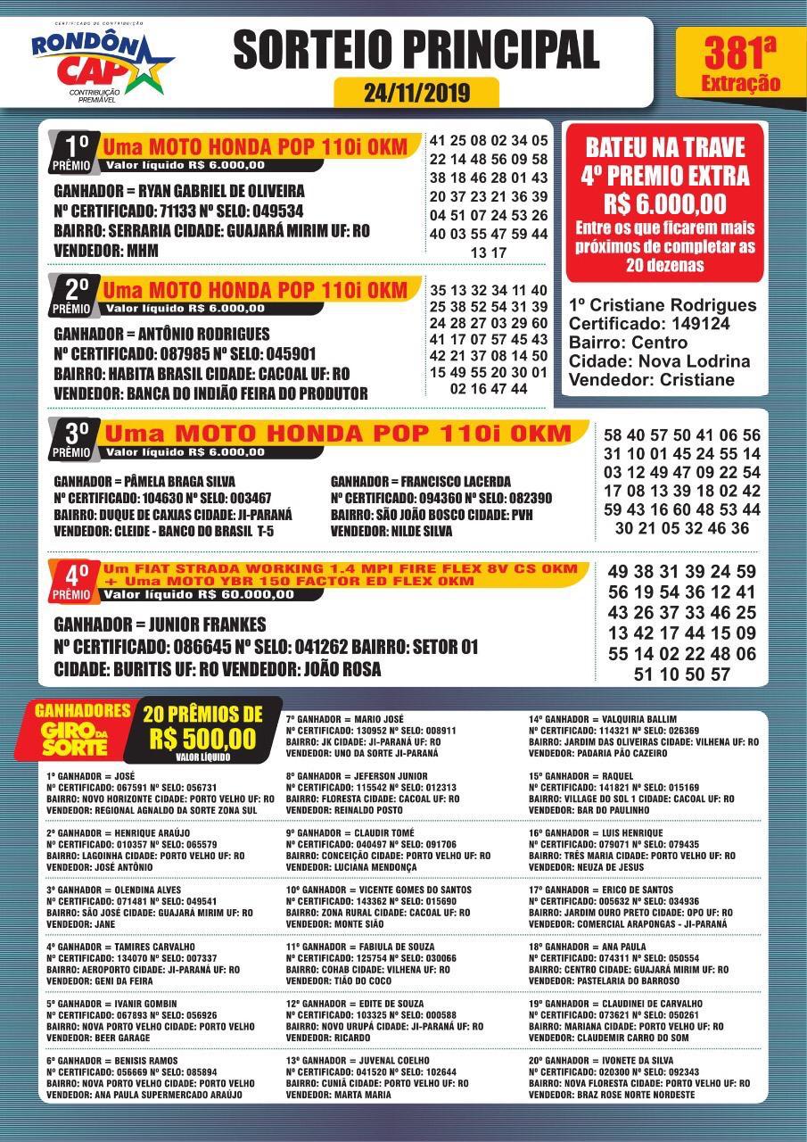 Os prêmios saíram para as cidades de Guajará Mirim, Cacoal, Ji Paraná, Porto Velho, Buritis, Vilhena e Nova Londrina. E neste domingo tem Black Friday Rondoncap: você paga um e leva dois por apenas R$ 10,00.