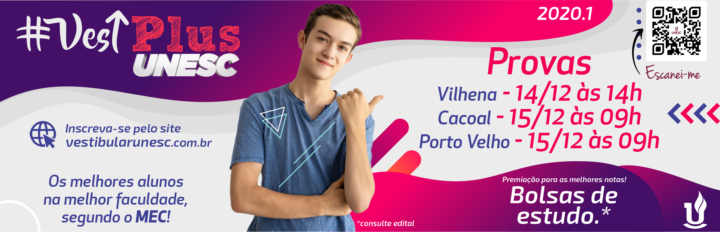 A Unesc realiza, no dia 15 de dezembro, as provas do Vestibular Tradicional, o VestPlus Unesc, nas unidades de Cacoal e Porto Velho. A prova tem início às 9h da manhã, com um total de três horas de duração.