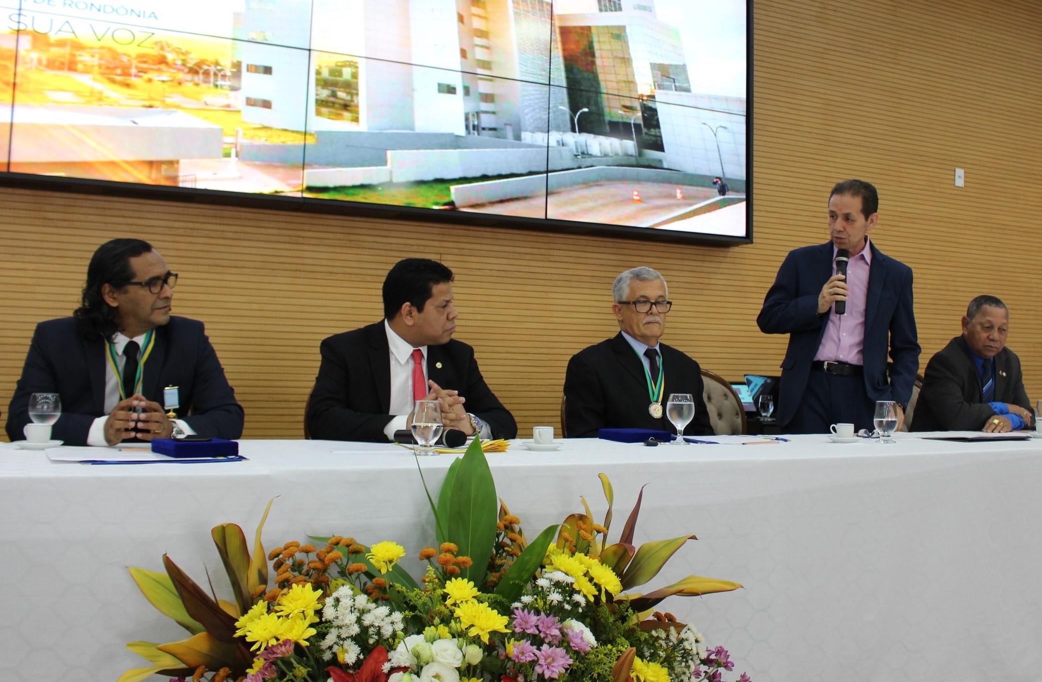 Já o presidente em exercício da Fecomércio, Gladstone Frota afirmou que “Há 36 anos a Fecomércio vem trabalhando para o desenvolvimento do Estado de Rondônia, e é com muita honra e alegria que recebemos homenagem desta Casa de Leis. Agradecemos ao presidente Laerte Gomes e ao deputado Jair Montes pela propositura em nome do presidente da Fecomércio Raniery Araujo Coelho. Essa homenagem é de todos que compõem o quadro de diretores e conselheiros da Fecomércio, aqueles que lutam diariamente pelo bem do nosso Estado, dos nossos empresários e do nosso comércio. Seguimos à disposição para continuar somando com esta casa no que for preciso”.