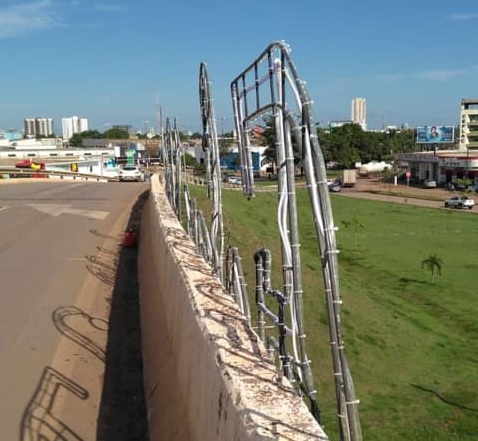 Durante a madrugada desta terça-feira (17) vândalos depredaram a decoração de natal que estava exposta no viaduto do Trevo do Roque da BR-364 em Porto Velho. Mangueiras de LED que faziam a iluminação foram puxadas, entortadas e retirada da margem do viaduto.