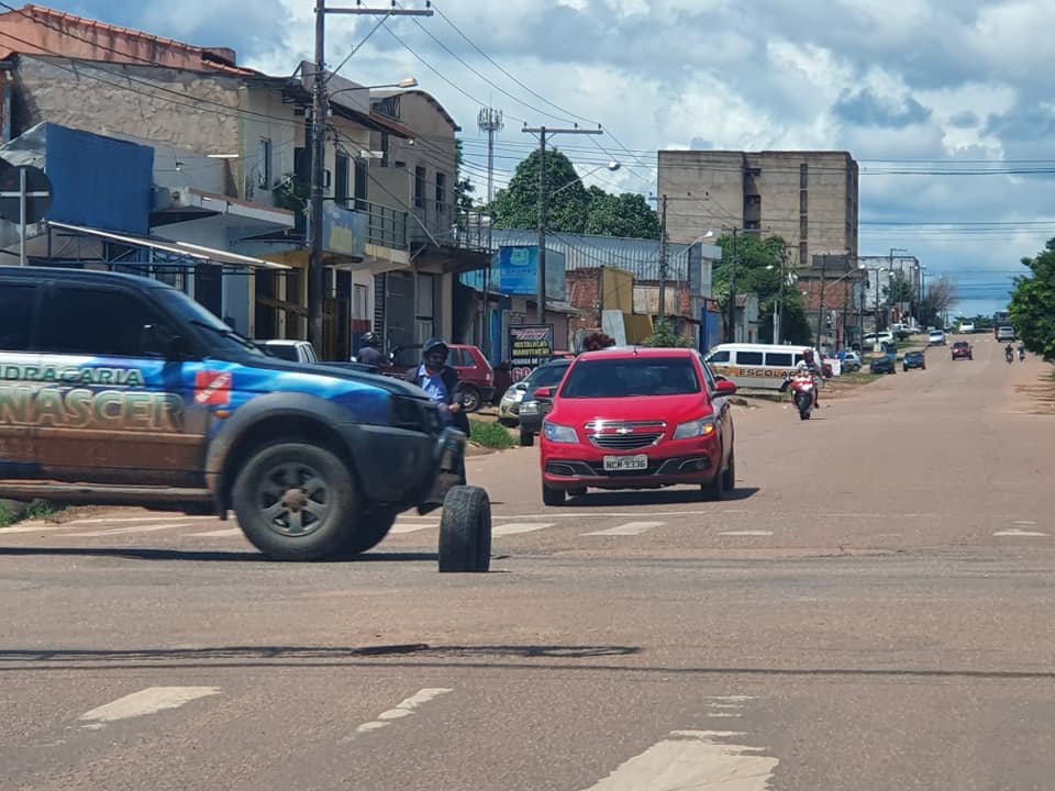 O registro mostra um buraco no meio da avenida Amazonas, uma das mais movimentadas da capital de Rondônia, sendo sinalizado com um pneu para evitar que motoristas, motociclistas, ciclistas e pedestres sofram alguma espécie de sinistro.