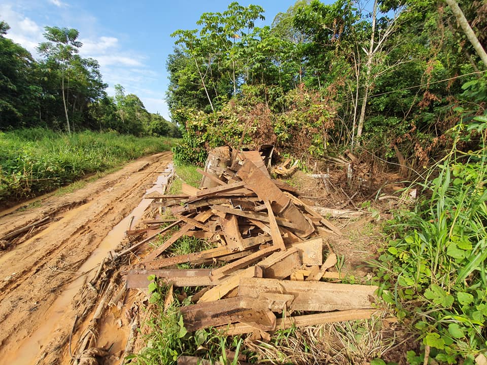 No local, o repórter fez imagens, onde aparecem montes de ferro amontoados e prontos para serem transportados.