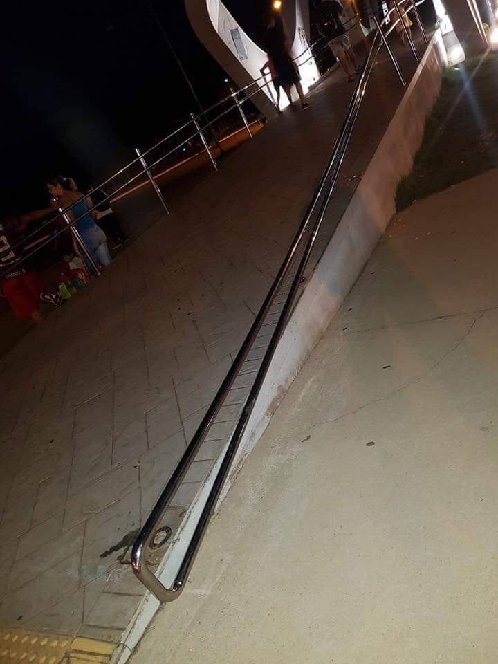 O corrimão da passarela é uma peça bonita, soldada em uma única extensão, sustentada por pequenos pilares, que foram arrancados e furtados. O registro foi realizado pela comunidade que indignada publicou essa situação vergonhosa nas redes sociais.