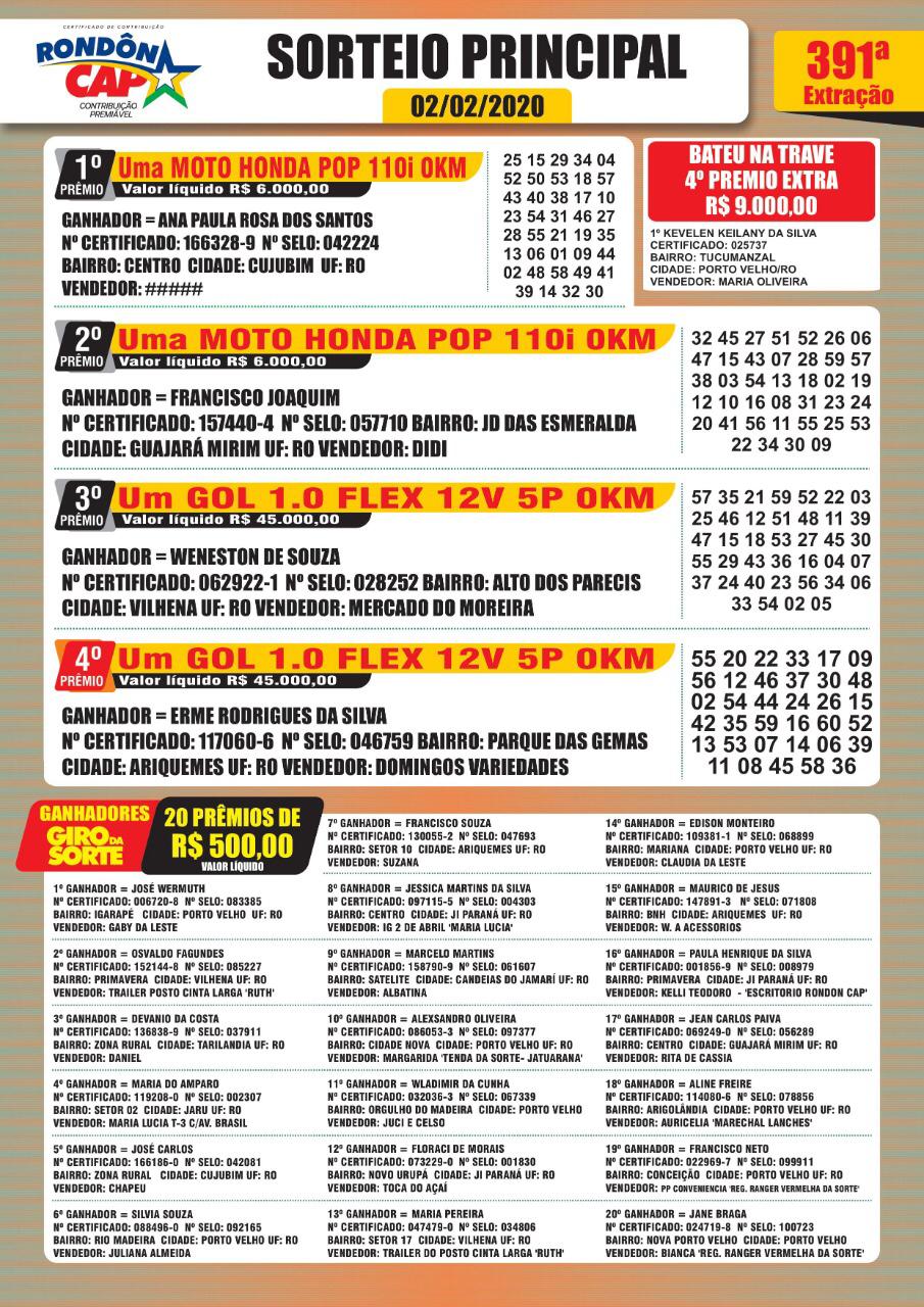 No domingo, dia 02 de fevereiro o Rondoncap sorteou dois carros, duas motos e muitos prêmios em dinheiro; Confira os melhores momentos do sorteio que foi transmitido ao vivo pela Rede TV e uma enorme rede de rádios e televisão em todo o Estado de Rondônia.