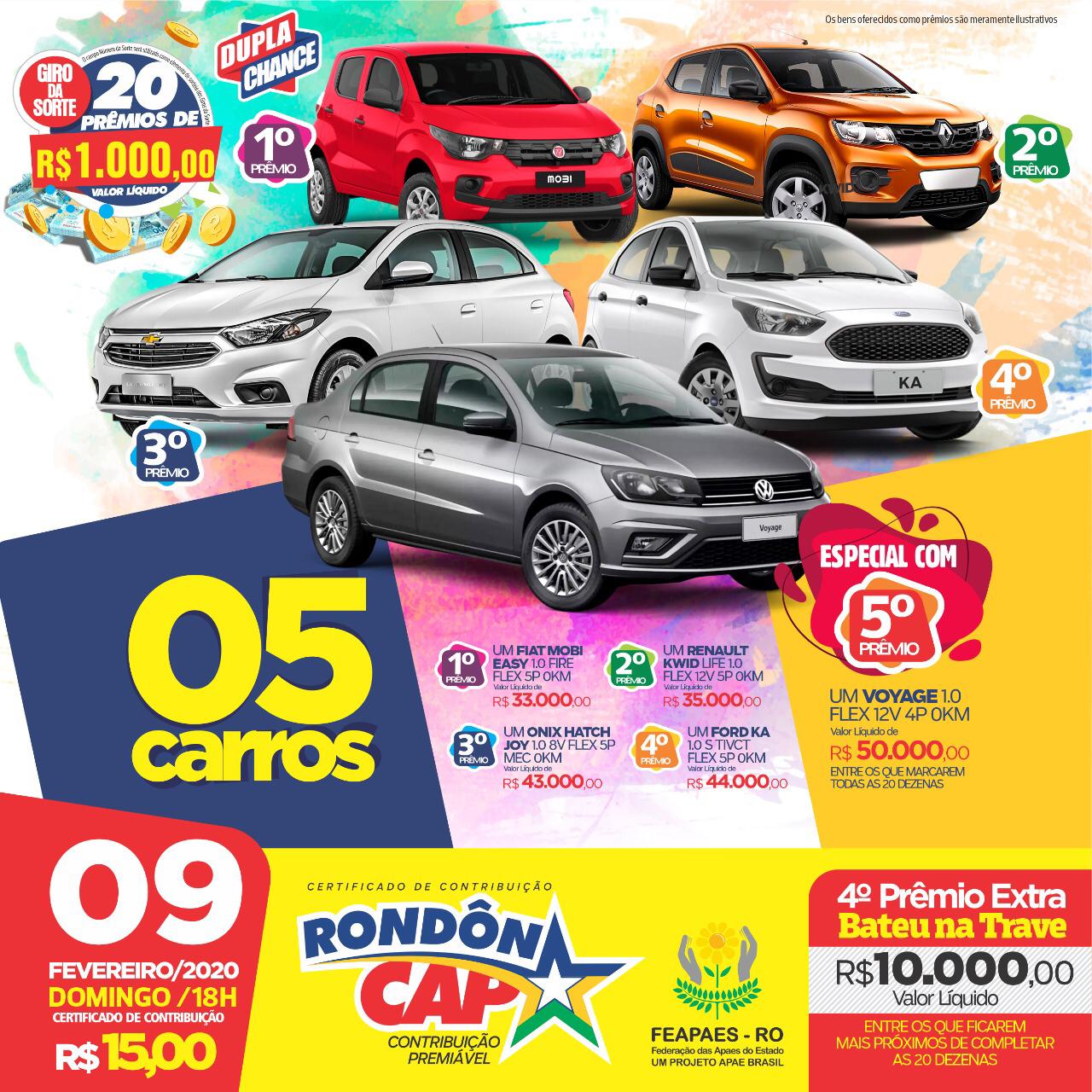 Neste domingo tem Rondoncap Especial Dupla chance; serão cinco carros - zero kilometro; tem carro para toda família!