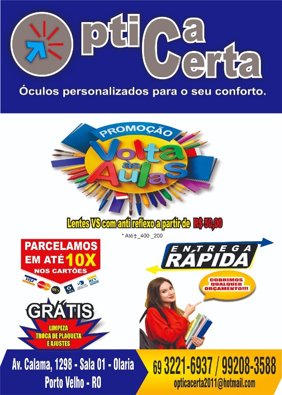 As melhores tecnologias em lentes e óculos de sol, armações importadas e nacionais com manutenção gratuita*, parcelamento em até 10x no cartão de crédito ou em até 6x no boleto bancário, atendendo todos os convênios e cobrindo qualquer orçamento a Óptica certa é a escolha ideal para seu conforto.
