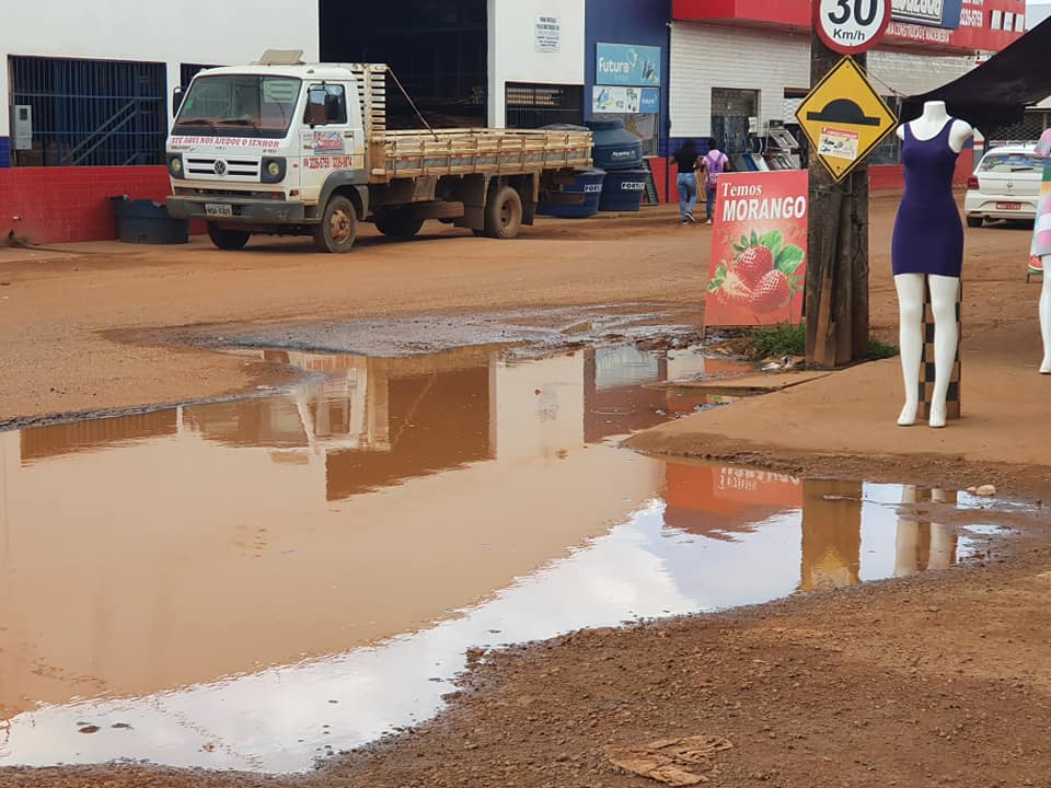 Comerciantes estão sendo prejudicados em decorrência de condições mínimas de infraestrutura, fazendo com que seus estabelecimentos fiquem cercado de buraco e lama, isso, em uma via pública de intenso fluxo, utilizada como acesso a pelo menos três bairros da zona Leste da cidade.