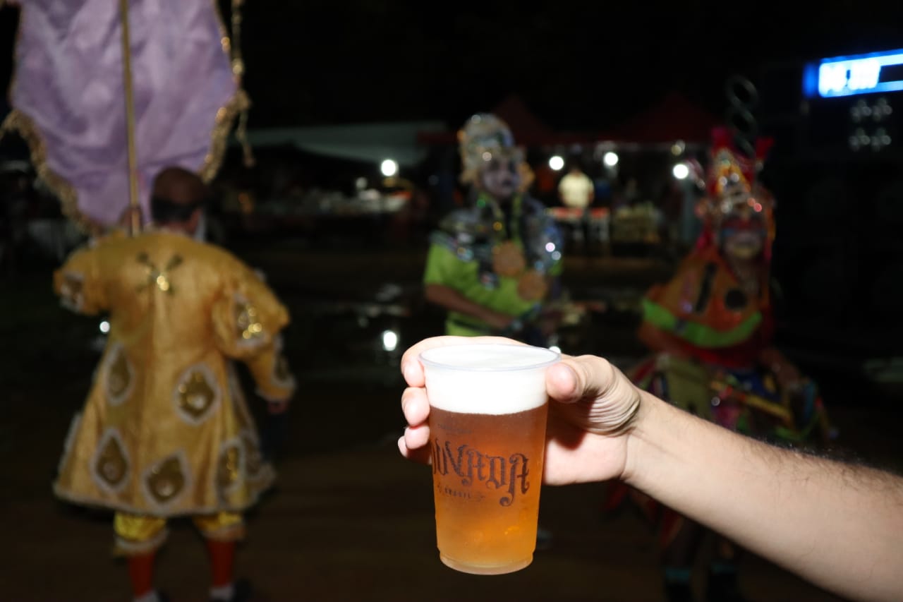 Tradicional Bloco Pirarucu do Madeira realizou um ensaio na feira gastronômica, que contou com chopp artesanal da cervejaria