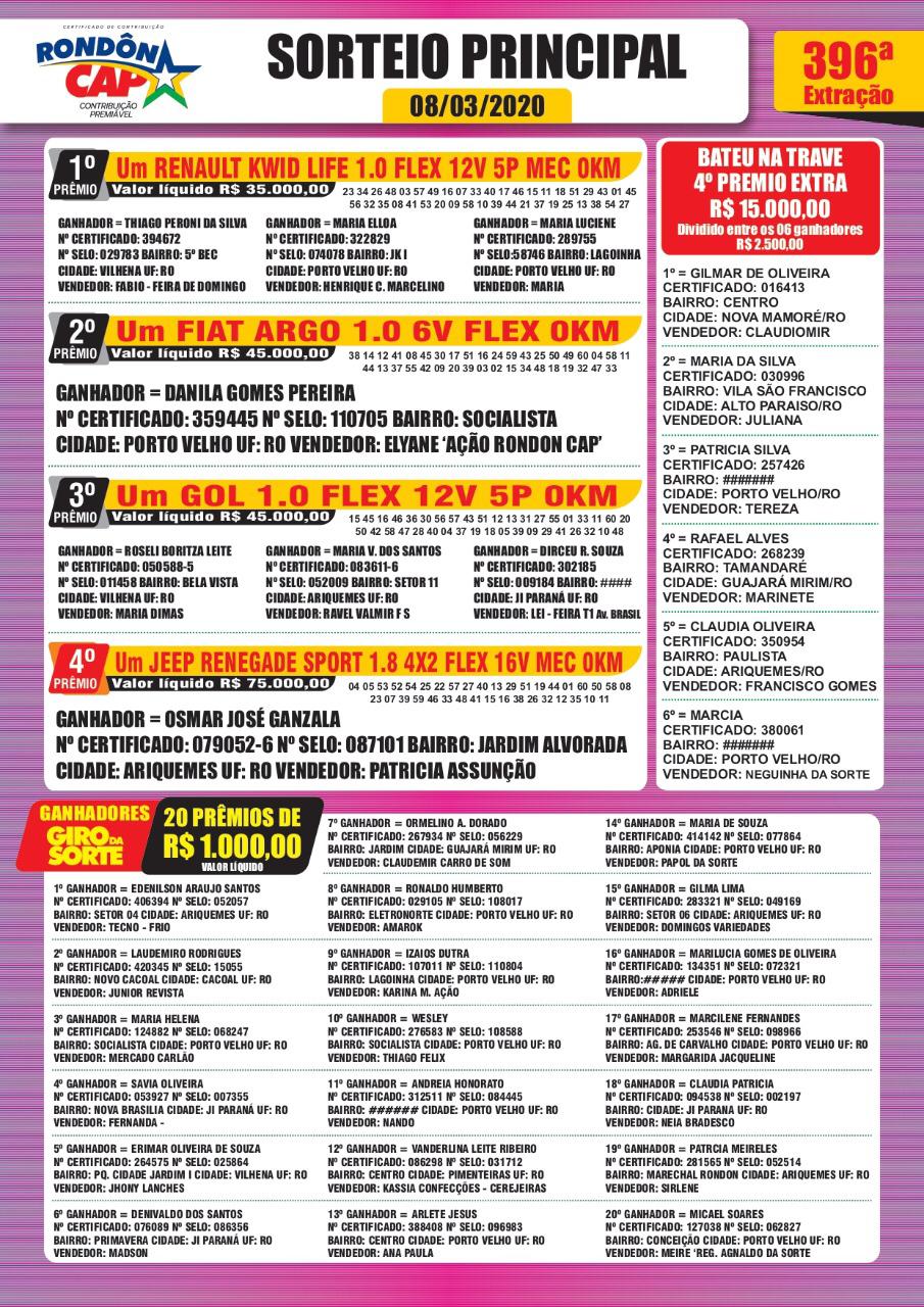 Os prêmios saíram para as cidades de Ariquemes, Porto Velho, Ji-Parana, Machadinho do Oeste, Cacoal, Pimenta Bueno, Vilhena, Nova Mamoré, Guajará Mirim, e Alto Paraíso.