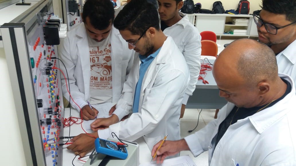 - Laboratórios de Eletrotécnica e Circuitos Elétricos: Nesses espaços, os acadêmicos praticam experimentos nas áreas da Eletroeletrônica, Sistemas Elétricos de Potência (SEP) e Instalações Elétricas Industriais. O local é equipado com: Bancadas de eletrônica de potência, medidas elétricas, correção de fator de potência, máquinas elétricas e geração, Transmissão e Distribuição de Energia Elétrica (GTD), onde simulam possíveis situações vivenciadas na prática da profissão;