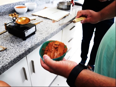 Experiência com material terroso sendo realizada em laboratório de Mecânica dos Solos.