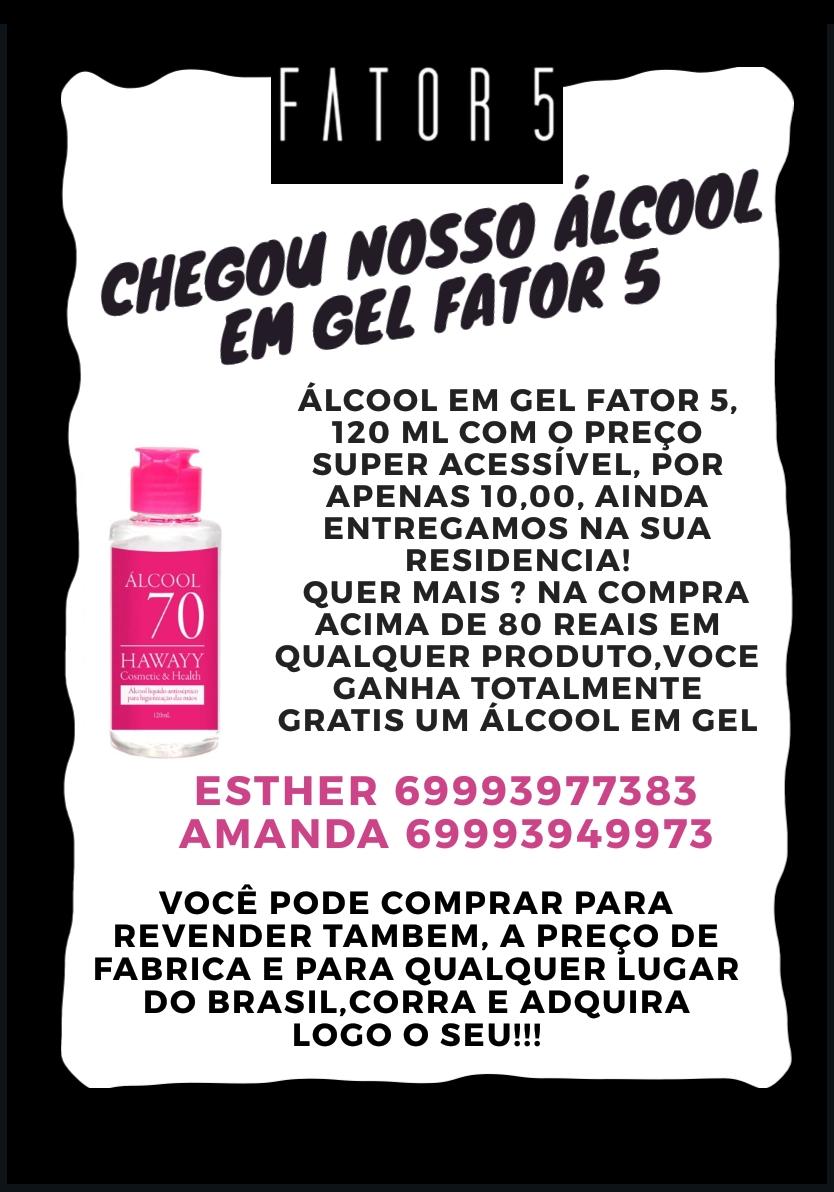 Fator 5 que sempre cuida de você, agora está provando mais uma vez que está com seus clientes em todos os momentos. Foi lançado o álcool em gel a preço super acessível e não para por aí, além dos preços de toda loja serem imbatíveis ainda está com promoções. Não perca mais tempo, a equipe está pronta para te atender e melhor corresponder aos seus gostos!