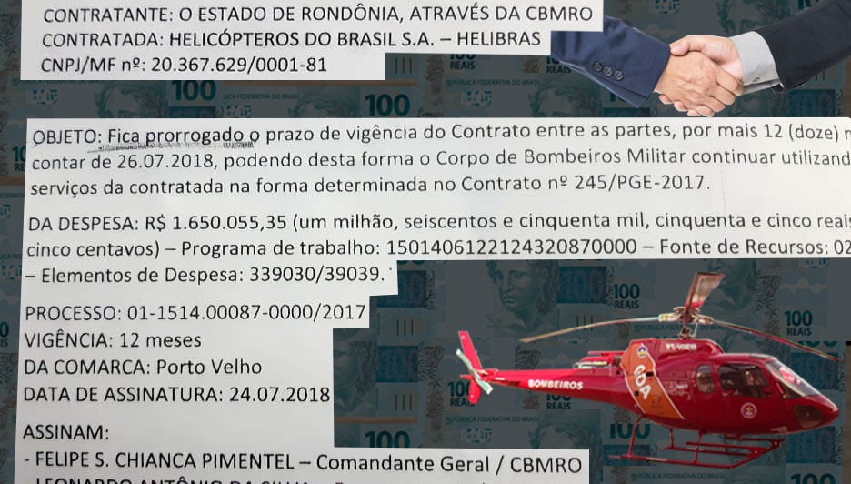 Em 24 de julho de 2018, houve uma prorrogação de contrato com a Helicópteros do Brasil S/A no valor de R$ 1.650.055,35 ( um milhão, seiscentos e cinquenta mil, cinquenta e cinco reais e trinta e cinco centavos ). Os valores constam no processo 01-1514.00087-0000/2017.
