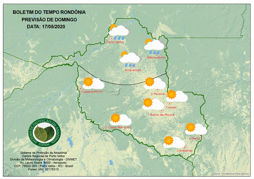No Norte Rondoniense devem ocorrer pancadas isoladas de chuvas e o tempo deverá variar sua nebulosidade entre parcialmente nublado a nublado, neste domingo, 17.