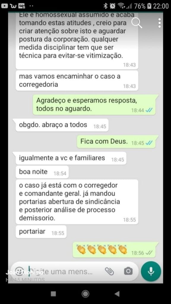 Em conversa de whatsapp, grupos de pessoas que se sentiram ofendidas com a publicação expressaram o seu repúdio ao conteúdo da postagem e aplaudiam ao saber que o caso já está na Corregedoria. A intenção é pedir o afastamento do sargento da corporação.