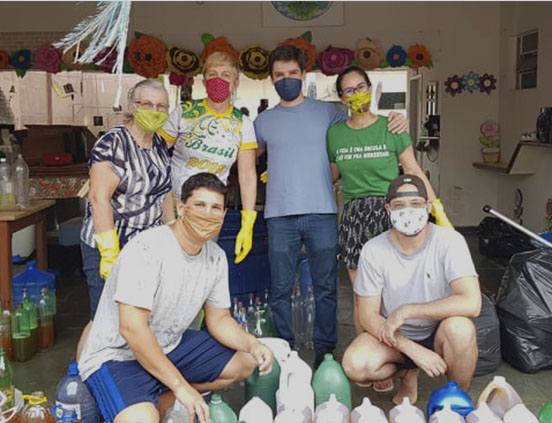 Às segundas e quintas-feiras a tarde grupo produz o material e aos sábados saem para entregar. Todos devidamente protegidos devido ao Covid-19.