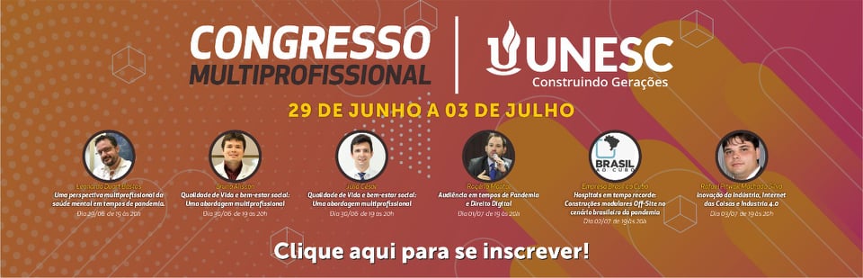 “O Congresso Multiprofissional Online da Unesc é voltado a todos aqueles que buscam uma integralização e a atualização dos profissionais em formação das diversas áreas de atuação. Vale ressaltar que os temas são multidisciplinares e transversais a diversas áreas do conhecimento”, destacou a coordenadora do curso de Arquitetura e Urbanismo da Unesc, Jamille Coelho.