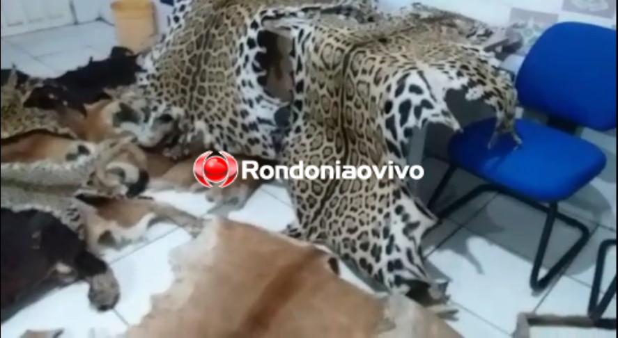 Os militares logo viram estendidos em um galpão 12 couros de onça e uma de gato maracajá e também várias cabeças. Além disso, foram apreendidas quatro espingardas no local.