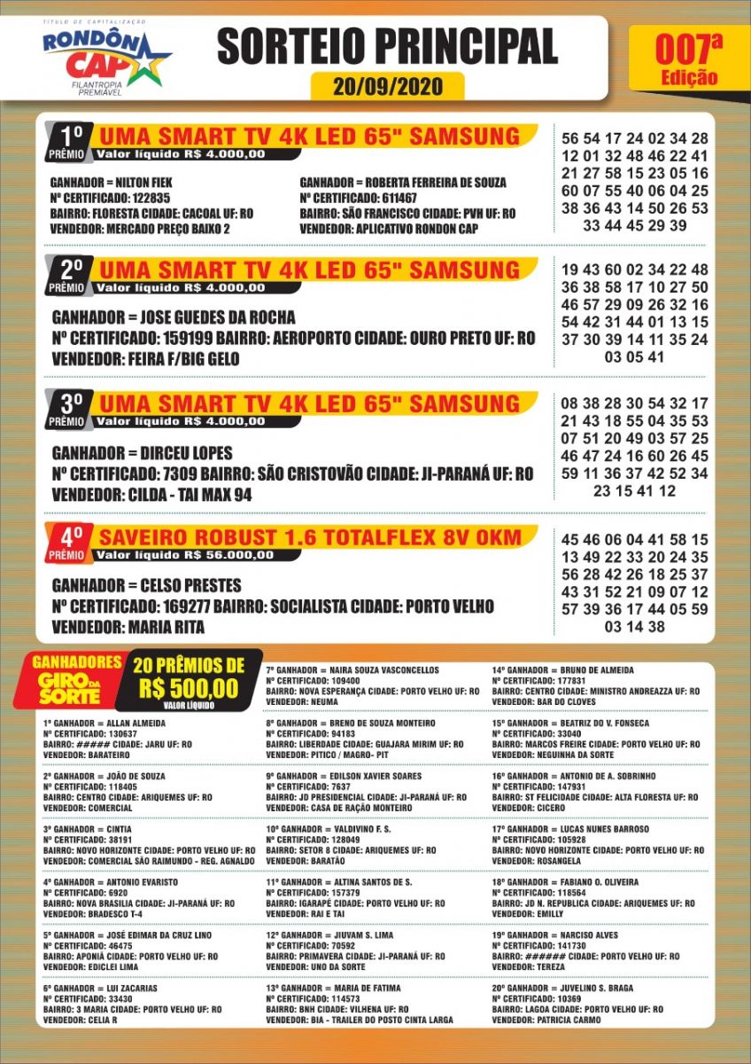 O Rondoncap de ontem levou sorte a vários municípios de Rondônia, é o Rondoncap levando a sorte aos 4 cantos do Estado. Com apenas cinco reais você pode ajudar as Apaes de Rondônia e ainda realizar o sonho de ter um Ônix zero KM na garagem.