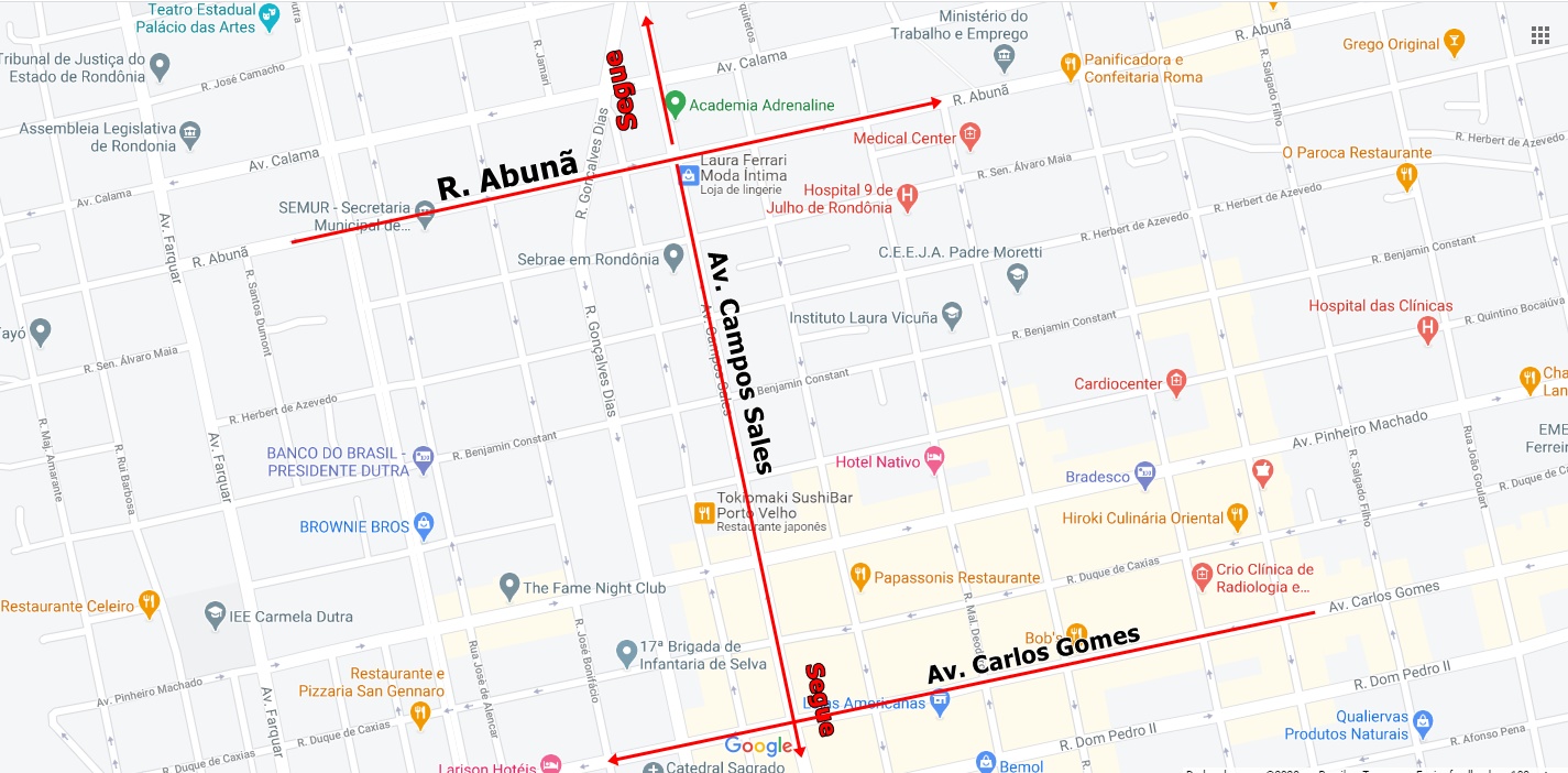 A avenida Campos Sales mudará de sentido no próximo sábado (26) no trecho compreendido entre as avenidas Abunã e Carlos Gomes.