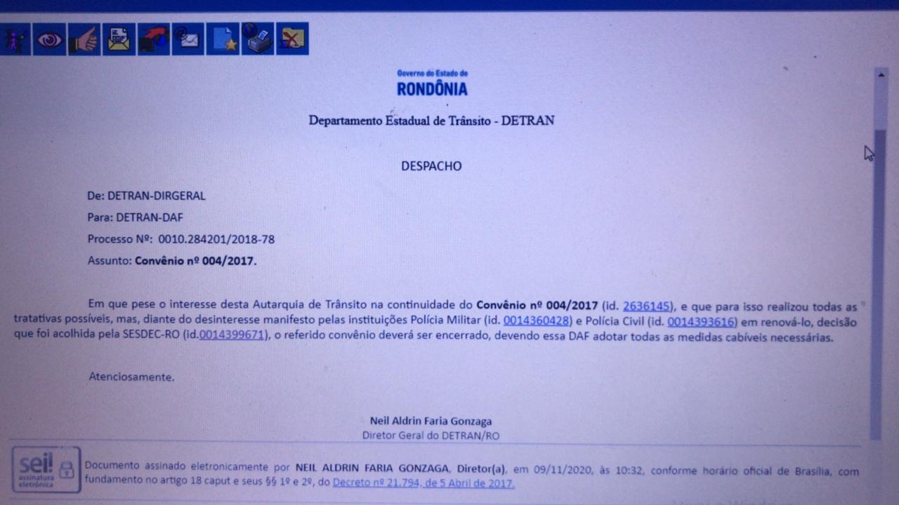 A Polícia Militar, Polícia Civil e o Departamento Estadual de Trânsito (Detran), estão em um impasse grande quanto ao Convênio nº 004/2017, que estabelece um trabalho conjunto dos três órgãos. Eles firmaram um contrato para realização da Operação Lei Seca em Rondônia.
