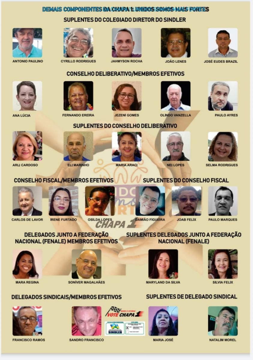 O Coordenador Geral que encabeça a Chapa 1 (Unidos Somos Mais Fortes), é o sindicalista Zamyrton Rocha, servidor da Casa Legislativa há mais de 37 anos