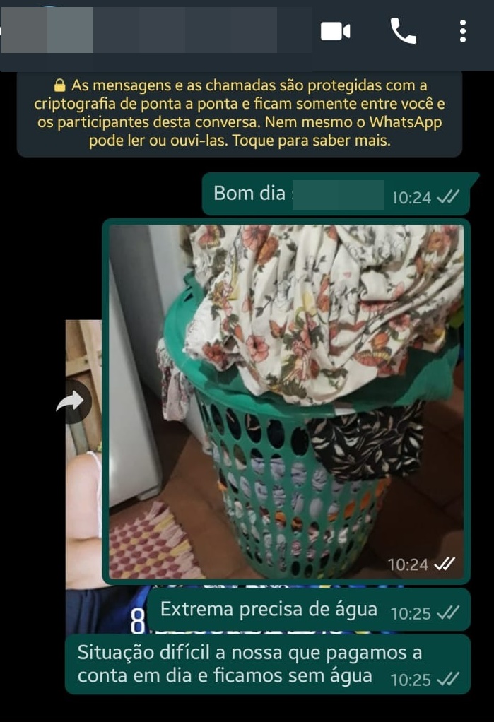 Nas imagens, eles mostram o desespero que estão passando sem água para as necessidades básicas, como lavar roupas, cozinhar ou tomar banho. A comunidade está preocupada também com os casos de Covid-19 registrados na região, pois, sem água, não podem tomar as medidas de higiene necessárias para evitar o coronavírus.