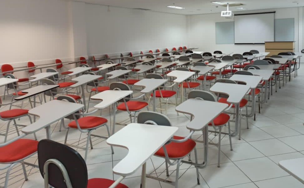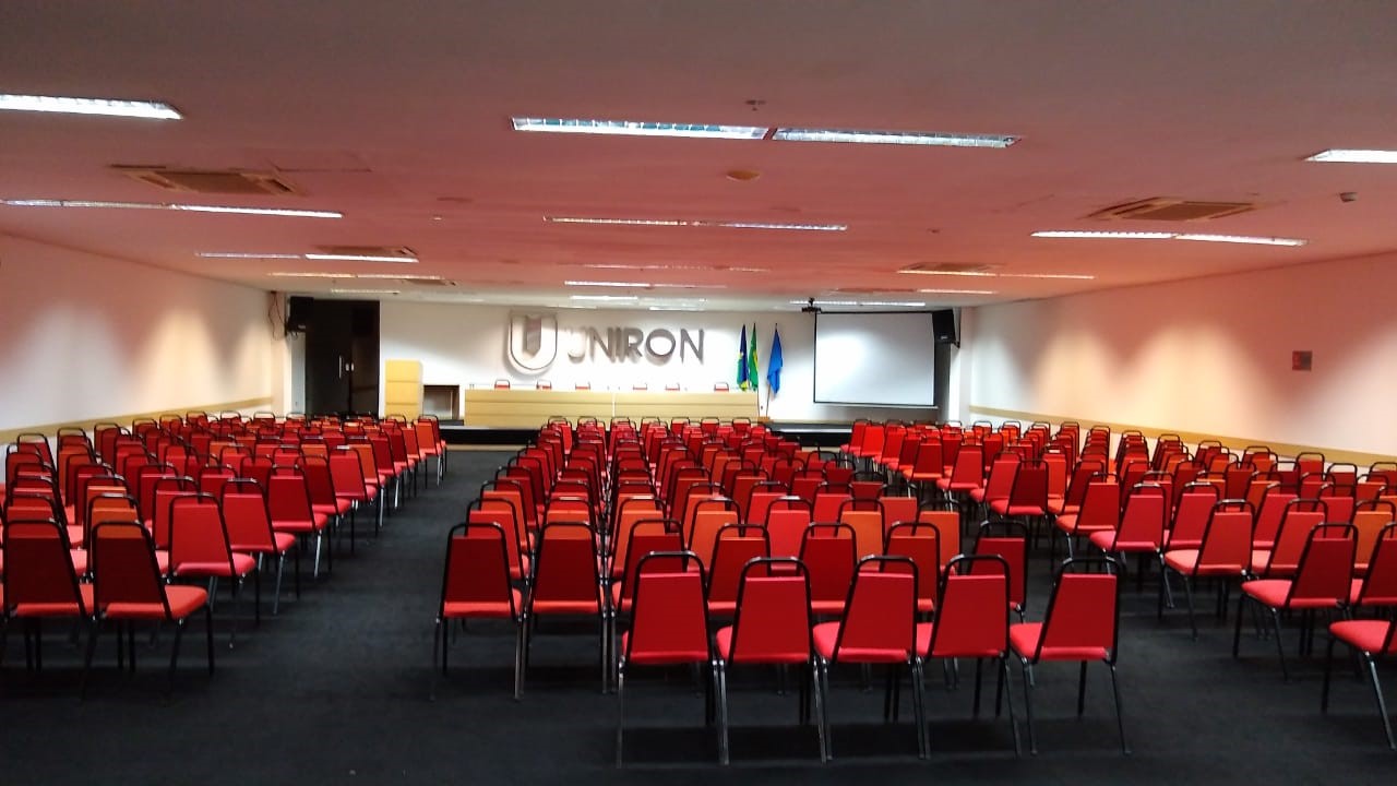 Incentivando os encontros e debates inerentes a cada área de formação, possuímos um moderno auditório para cerca de 350 pessoas, no segundo piso, contando com sistema de som próprio, tela retrátil para projeção e estrutura adequada para a realização de eventos.