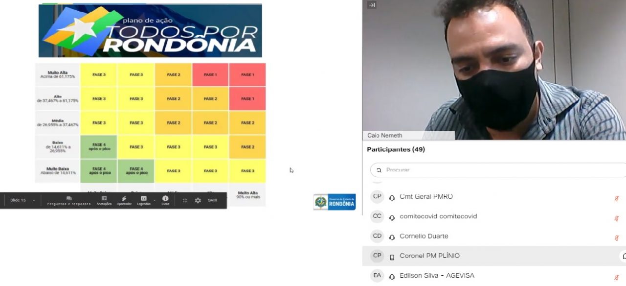 O representante da Associação Rondoniense de Municípios (Arom), Arismar Araújo de Lima disse estar preocupado com o aumento dos casos de Covid-19 e dos prognósticos destacados em reunião.