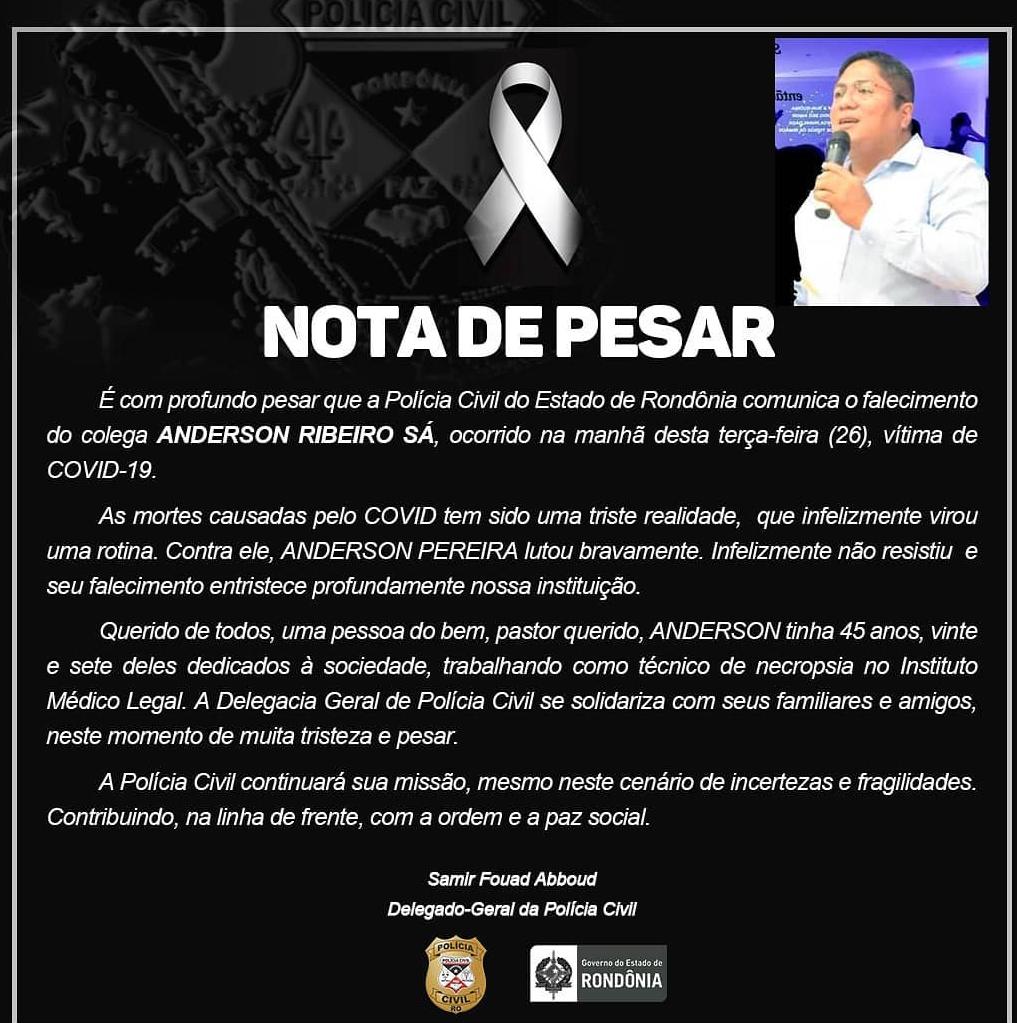 O Diretor Geral da Polícia Civil, Samir Fouad Abboud emitiu nota de pesar pela morte do servidor público